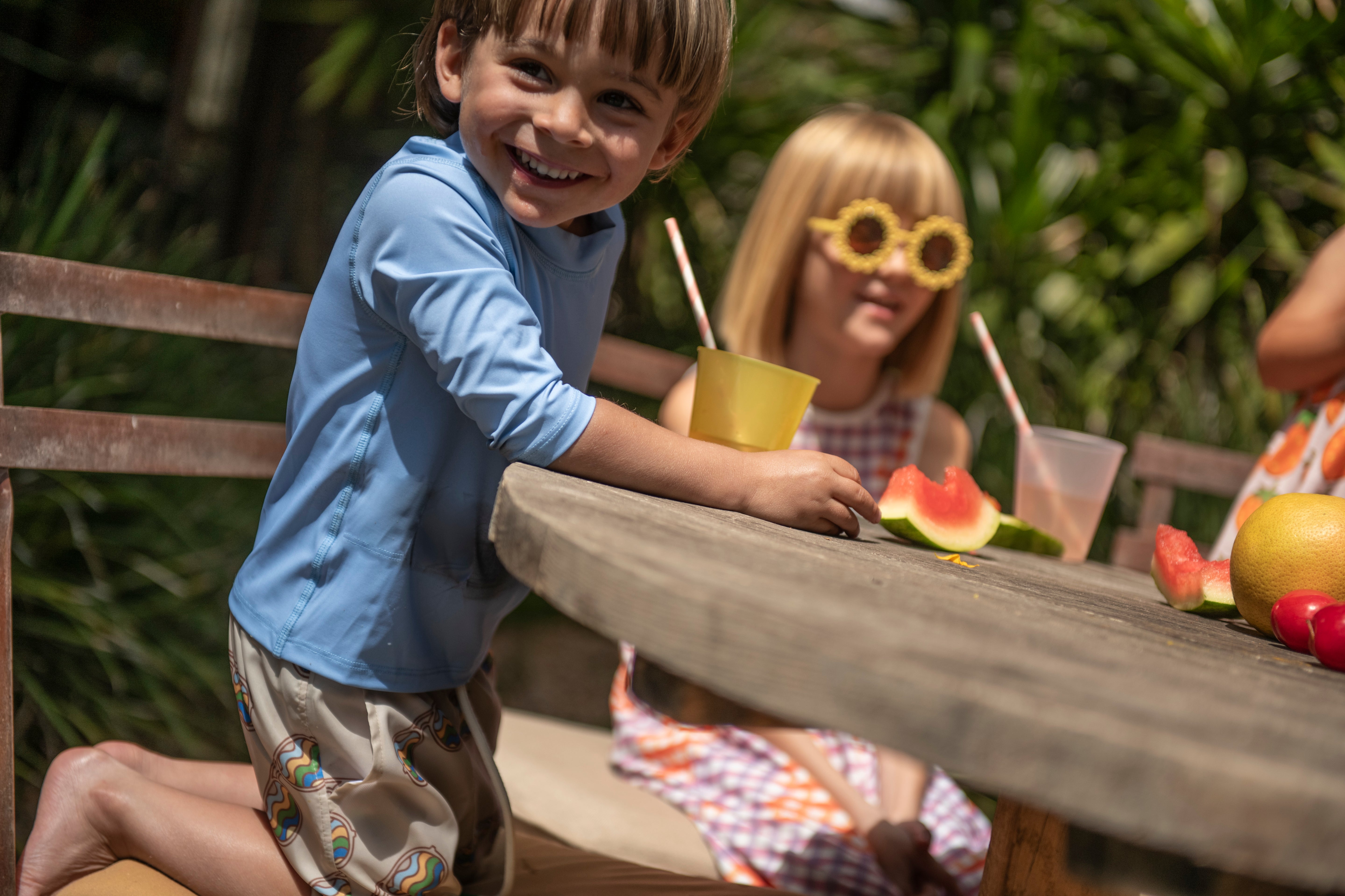 Our rashguards and bikinis are made fro 100% recycled polyester ECONYL (UPF 50+) and our trunks are made from 100% recycled polyester from fishing nets SEAQUAL.